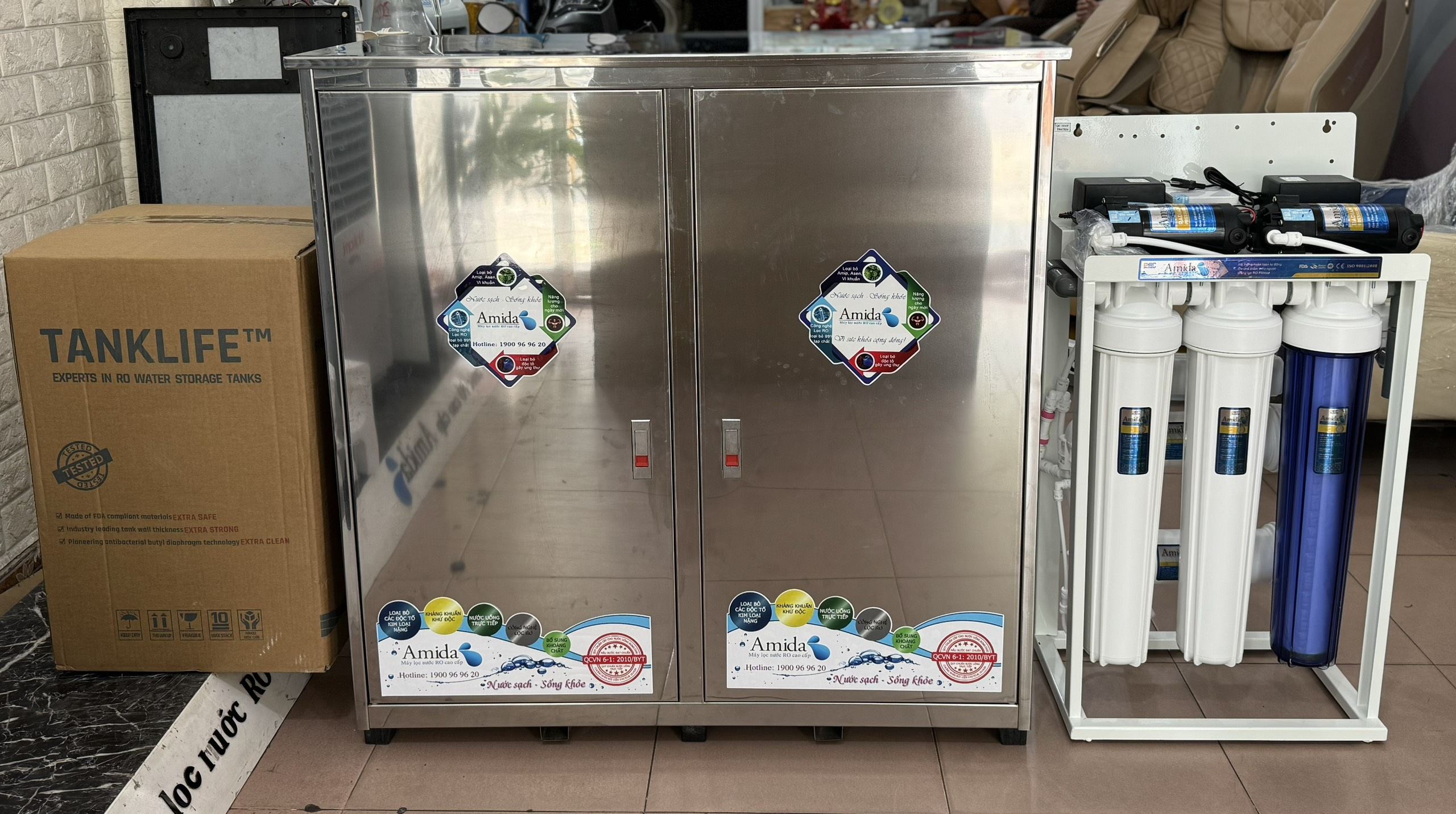 Máy lọc nước RO bán công nghiệp - 100l/h tủ inox AM-100T